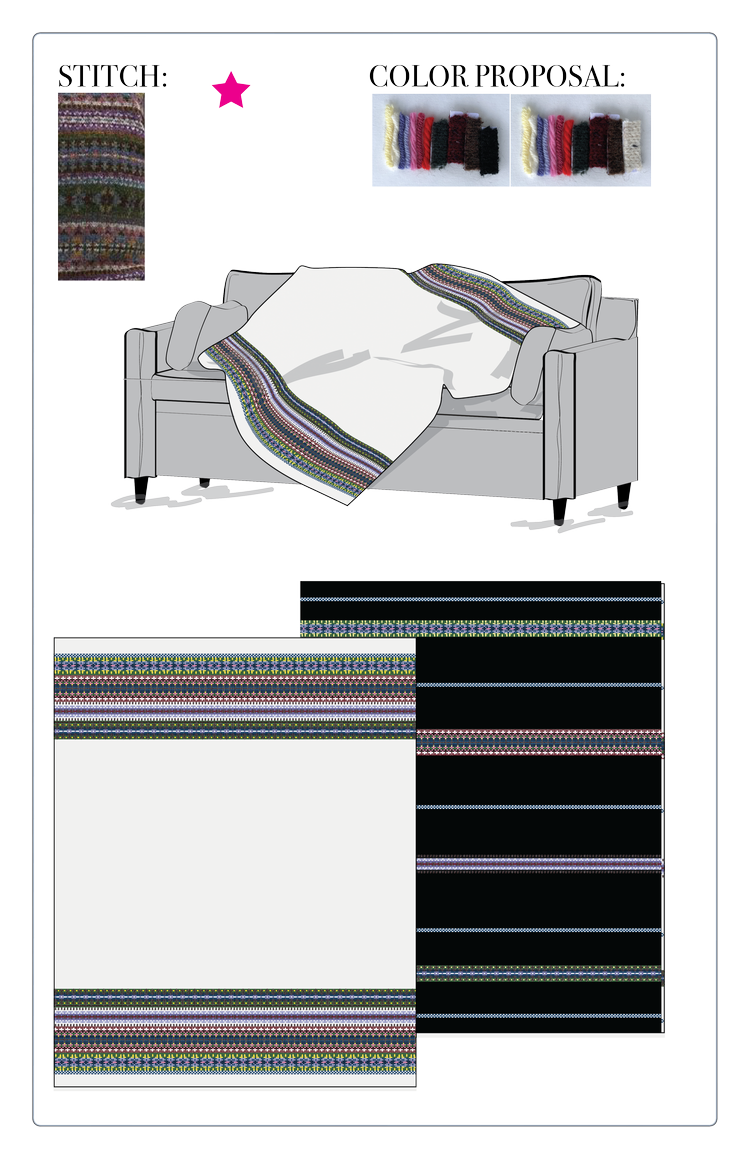 We moved forward with fairisle to highlight her mother’s yarn at the blanket ends.